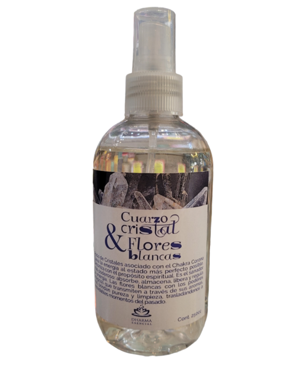 Rocío asociado con el chakra Corona. Este cristal lleva la energía al estado más perfecto posible. Sintoniza con el propósito espiritual. Es el sanador más poderoso: absorbe, almacena, libera y regula la energía. Las flores blancas con los poderes mágicos que transmiten a través de sus aromas, nos brindan pureza y limpieza, trasladándonos a inolvidables momentos del pasado.