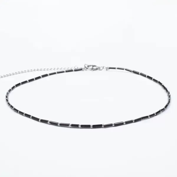 Collar con mostacillas negras y bolitas de acero, es super delicado y va con cualquier look, ya sea de día o de noche. Además, es unisex, así que puede ser el complemento perfecto para vos o para regalar a alguien especial 🎁.
