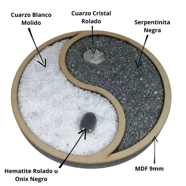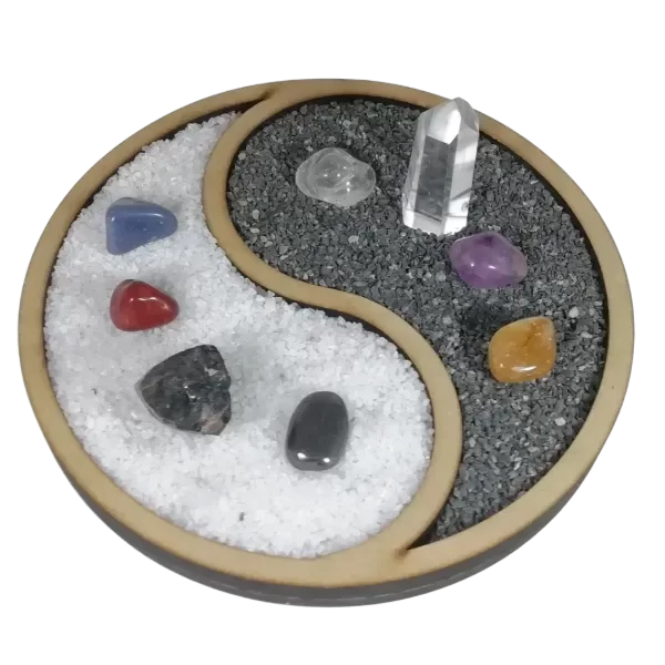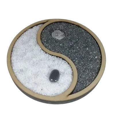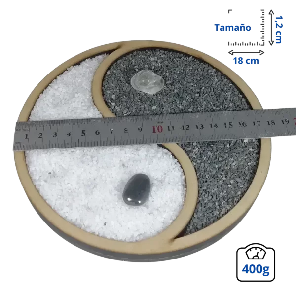 Jardín Zen Yin Yan Mini, con arena de cuarzo y dolomita negra.
