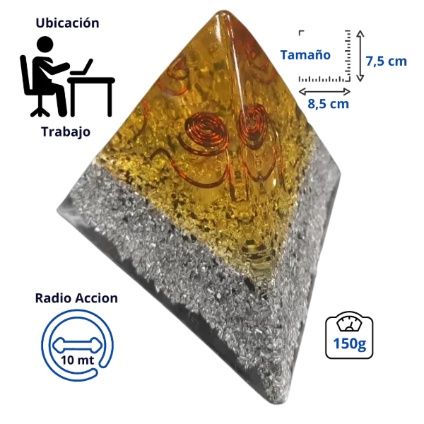 Puede utilizarse como primer orgonite para ir probando la acción de los mismos y luego acrecentar su efecto con alguna otra pirámide más grande.