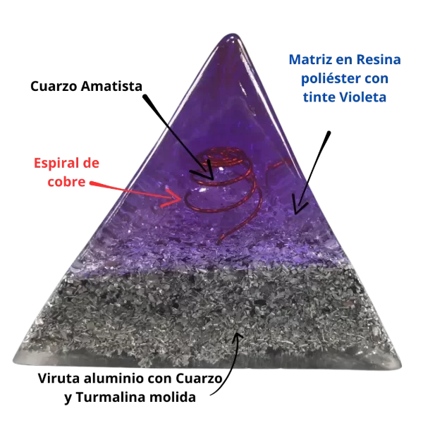 Componentes: Punta traslucida con color por tintura en la resina, que deja ver punta de Cristal de Amatista.