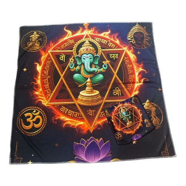 PAÑO PARA TAROT CON BOLSITA - GANESHA FUEGO 104