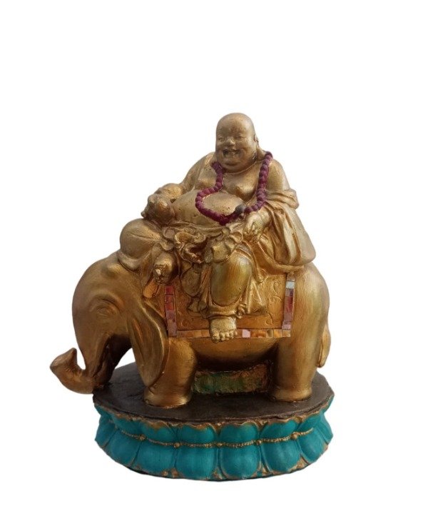 BUDA SOBRE ELEFANTE DE YESO 22CM - BUDA#12