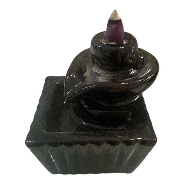• Cono de humo inverso: Para lograr el efecto, se debe usar un cono de humo especial con un agujero en la base. Al encenderlo, el humo, más denso que el aire dentro del quemador, desciende por gravedad en lugar de ascender, creando el efecto de cascada.