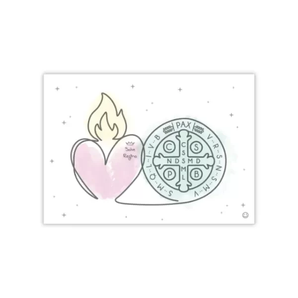 Este calco con la cruz de San Benito y el Sagrado Corazón unidos de una manera única y distintiva es el detalle perfecto para llevar su protección a donde vayas. Pegalo donde desees: en tu auto, compu, termo, o cualquier lugar que quieras personalizar y cargar de energía positiva. Un accesorio lleno de significado para acompañarte siempre. ✨