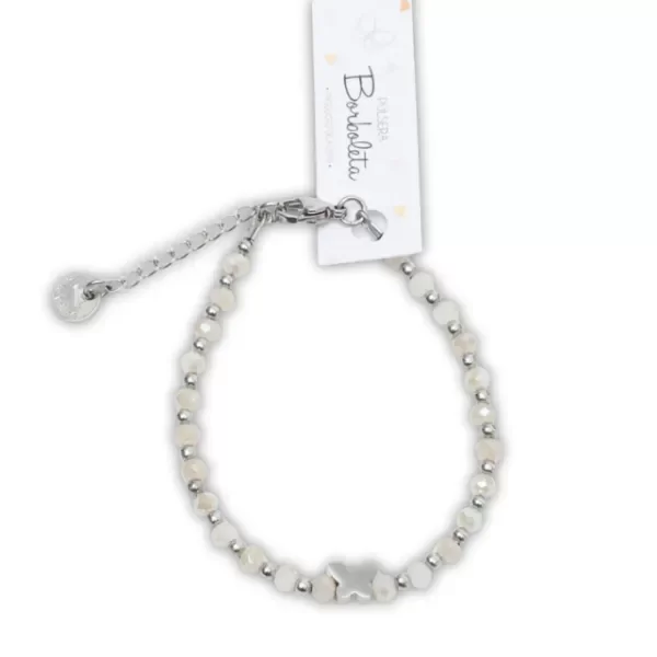Pulsera de cristales nude con aurora boreal muy delicados y acero quirúrgico. Tiene un dije pequeño de una mariposa, también en acero. ¡Es un regalito divino🎁!