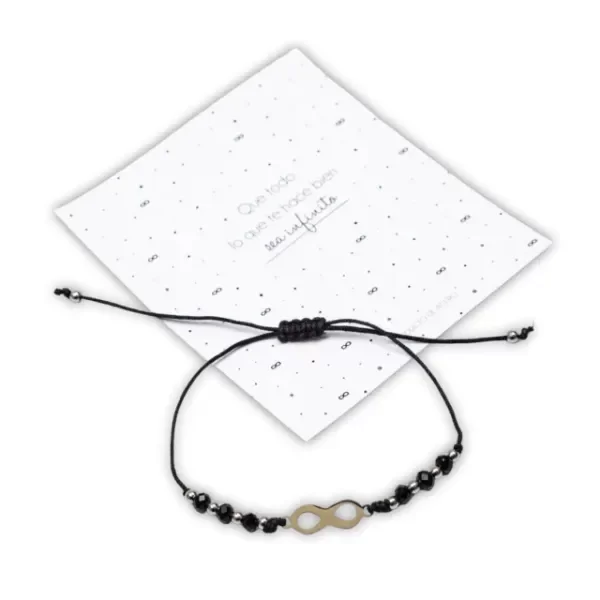 ✨ Pulsera de hilo con cristales brillantes y un dije de acero en forma de infinito ♾️. Este accesorio es ideal para complementar tus looks diarios, simbolizando la belleza y la permanencia de esos momentos especiales 💖.Además, su diseño regulable asegura que se ajuste cómodamente a cualquier muñeca.