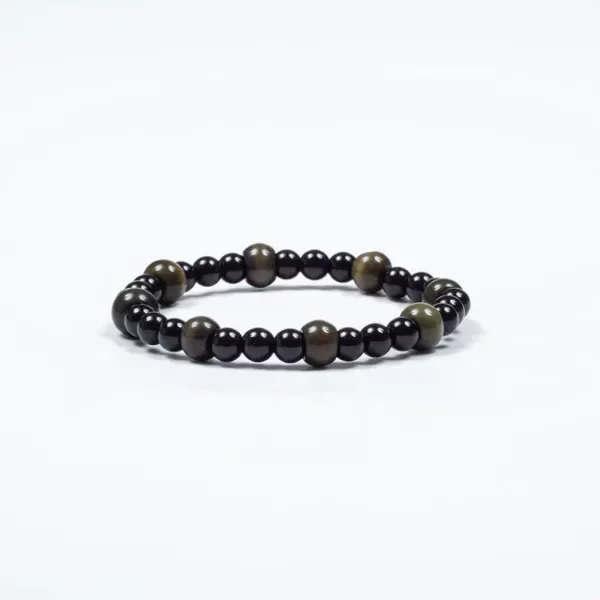 Pulsera elastizada, confeccionada con piedras negras y verdes de distintos tamaños. Es súper resistente y duradera gracias a sus materiales de alta calidad