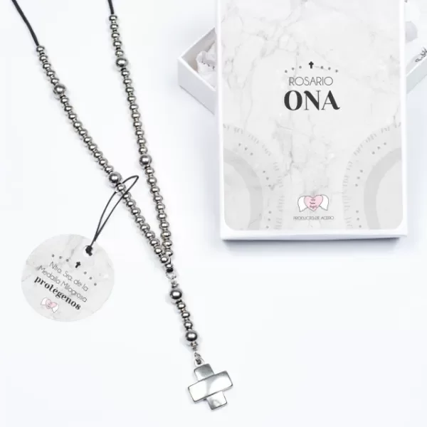 🙏 ¡Eleva tus oraciones y tu estilo con nuestro sofisticado rosario! Confeccionado con hilo y cuentas de acero, y una cruz maciza de acero, este rosario es mucho más que un accesorio. Es un símbolo de protección y compañía. Además de realzar tus looks, este rosario está diseñado para adaptarse a tus preferencias, gracias a su sistema de nudos regulables. Así que usalo como más te guste y deja que te acompañe en cada momento de tu vida.